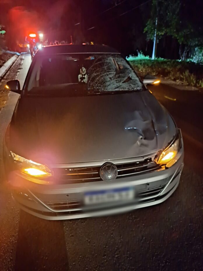 Chegando no local os Bombeiros identificaram que se tratava de um atropelamento envolvendo um automóvel VW Polo Cor Prata placas de Monte Castelo/SC e uma bicicleta.