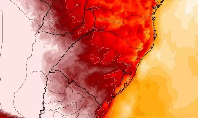 As máximas voltam a superar a casa dos 30°C em todas as regiões, variando entre 32°C e 35°C no Oeste, Extremo-Oeste e no Litoral Sul catarinense.