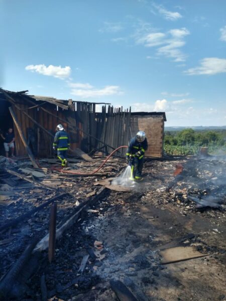 No local da ocorrência, os bombeiros relataram que as chamas consumiram por completo uma casa de madeira, resultando também na destruição de um barracão pertencente ao vizinho. A suspeita é de que o fogo tenha se iniciado próximo ao fogão a lenha.